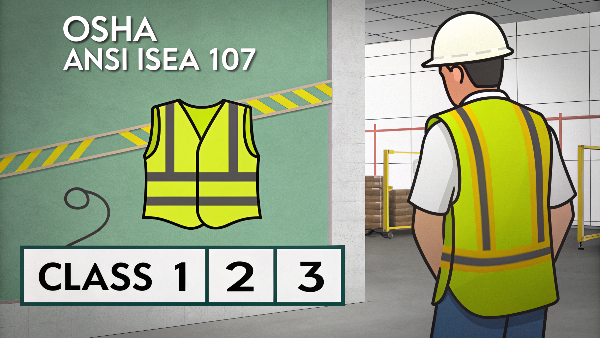 The main rule from OSHA and ANSI/ISEA 107 is about visibility. A compliant vest must use a specific fluorescent background color (yellow-green4, orange-red, or red) and have a minimum amount of retroreflective tape12. The Class (1, 2, or 3) depends on the job's risk level.